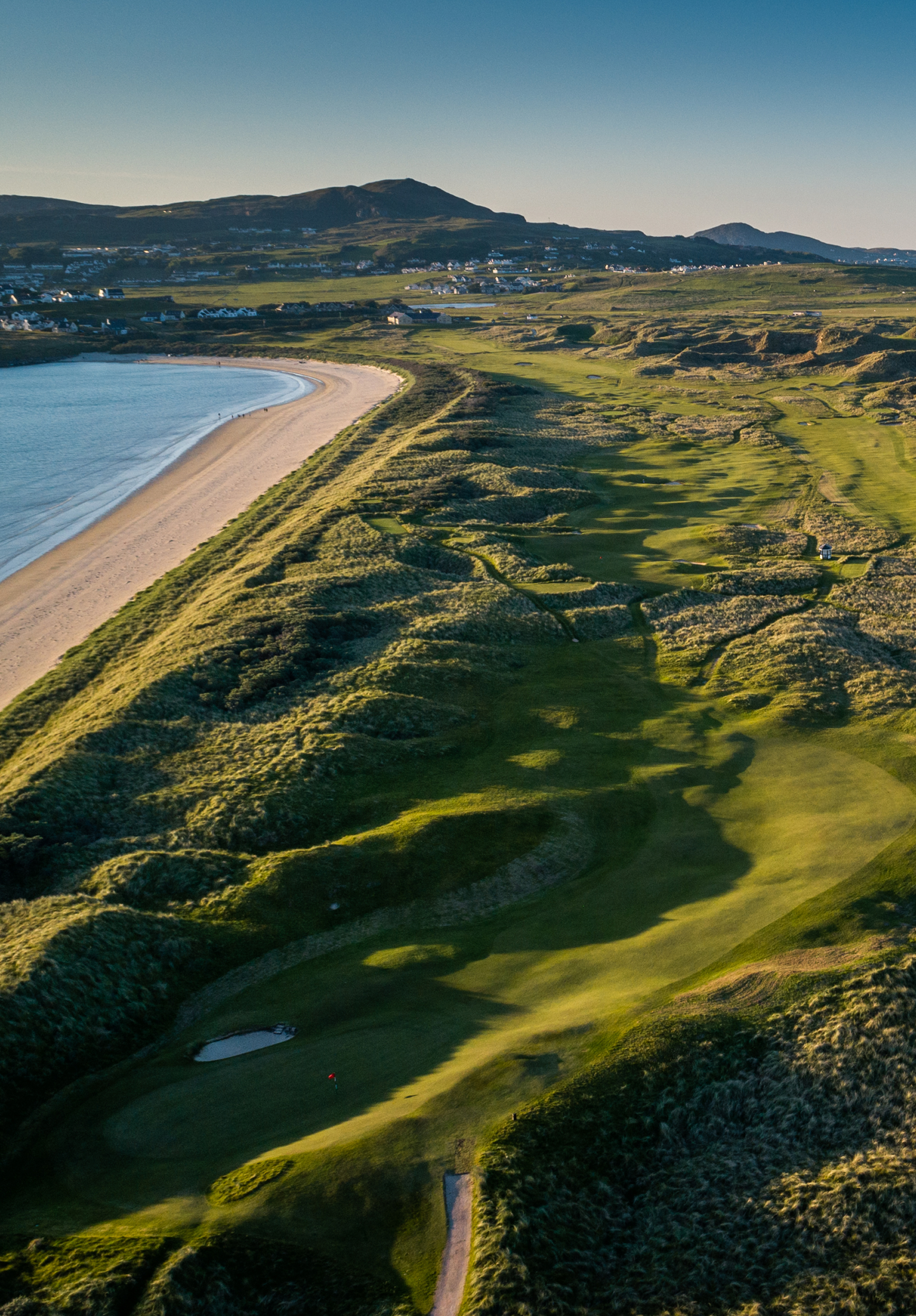 The two nines of the course have a distinctive feel, with the newer holes, the creation of Pat Ruddy and Eric Iverson, offering a unique start to the course, punctuated by choppy smaller dunes and unique green sites. The back nine encounters more dramatic dunes, with holes running close to Sheephaven Bay with wonderful views.